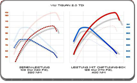 Durch Optimierung diverser Motor-Parameter werden Leistung und Drehmoment um bis zu 30% erhöht, Zuverlässig- und Fahrbarkeit bleiben unverändert. Der Kraftstoff-Verbrauch kann je nach Fahrweise um bis zu 0,8 l/100 km sinken.
